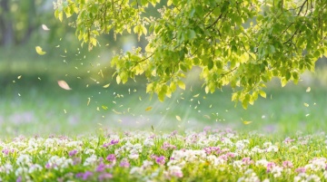 粉紫色渐变背景,柔和的粉色花朵与绿色叶子的自然元素,采用磨砂玻璃质感纹理,整体画面呈现出朦胧、梦幻、柔和的氛围,色彩过渡自然,光影柔和,植物元素分布在画面一侧,具有淡雅的装饰性。