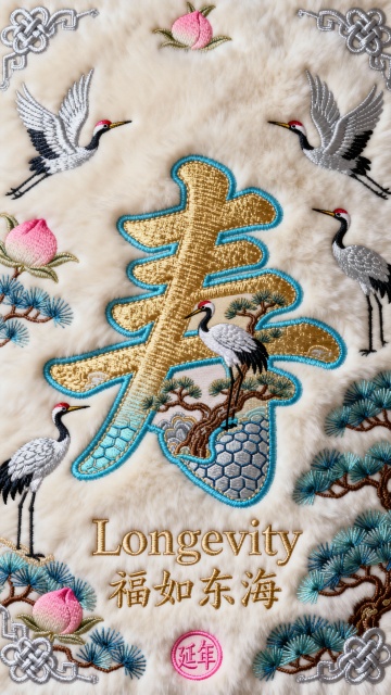 刺绣风融合工笔细节,大字“禄”居中,配孔雀、祥鹿与牡丹,浮雕质感突出,中式古典喜庆氛围浓郁,传递荣耀祝福。