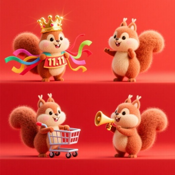 一系列6个完全不同内容的棕色毛绒松鼠玩偶,保持相同的3D超写实风格,每个小松鼠都有蓬松柔软的棕色毛发质感,可爱的耳朵,黑色大眼睛和黑色小鼻子,纯色背景,规整排布,每个小熊的姿态和手持物品各不相同,有的抱着一本书,有的戴着小帽子,有的拿着小花,有的背着小书包,有的戴着围巾,有的举着气球,整体画面充满可爱温馨的氛围,细节精致,光影柔和,立体感强。