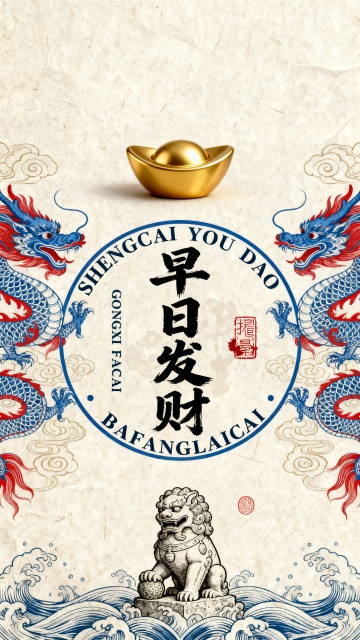 “新中式发财壁纸|早日发财 + 龙纹瑞兽 + 金元宝,2026 招财纳福必备手机屏保!”