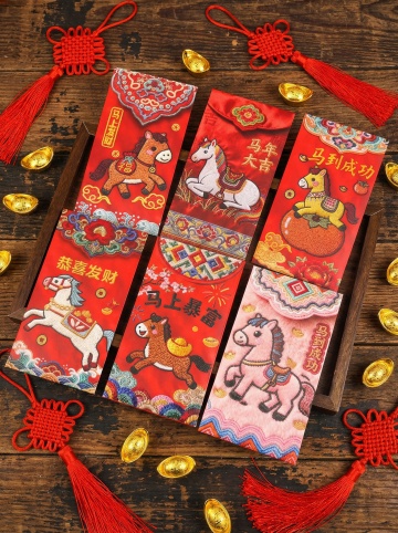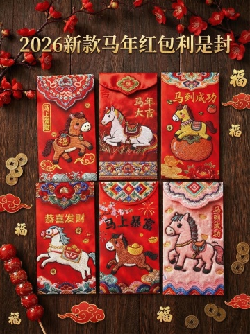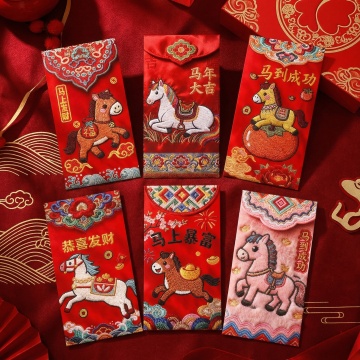 刺绣风萌猫手持红包,融合国潮元素与拟人设计,喜庆可爱,传递新年万事如意祝福。