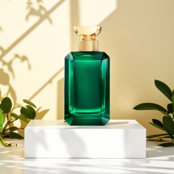 奢华感与优雅感交织,现代3D玻璃瓶身搭配金属盖,光影流动中展现重拟物质感,尽显高端美学。