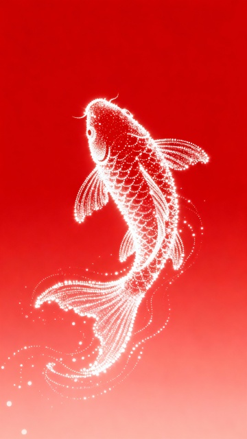 刺绣风工笔细腻,重拟物鱼形灵动,红金配色尽显喜庆中式感,国潮元素融合“发财”主题,民族风情浓郁,寓意财源广进。