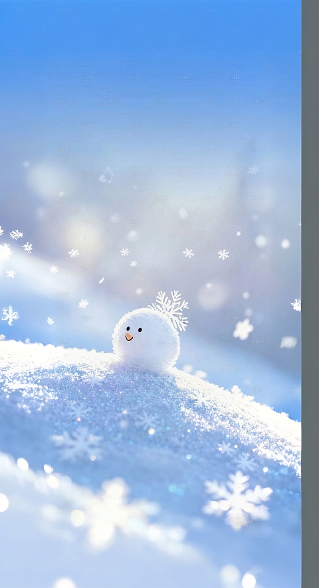 可爱卡通雪人,拟人化设计,蜡笔风与水彩风结合,描边柔和,背景飘雪点缀,充满温馨梦幻的圣诞氛围。详情