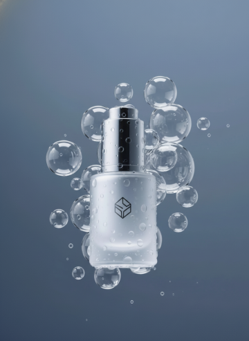 未来感与科技感交融的3D玻璃风设计,清透液态气泡环绕瓶身,简约主义美学呈现清爽质感,展现高端护肤的纯净与革新。