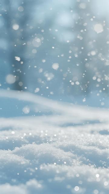 超写实风格的冬季雪景特写,纯净的白色积雪覆盖大地,呈现出细腻的纹理和自然的波浪起伏,远处是朦胧的雪山轮廓,天空为明亮的浅蓝色并带有柔和的光线效果,画面中飘着轻盈的雪花,近处的雪地上点缀着被雪覆盖的城市建筑屋顶和尖顶轮廓,整体营造出宁静而梦幻的冬日城市氛围,光线柔和,色彩以蓝白为主色调,保持高度的真实感和细腻的质感表现。