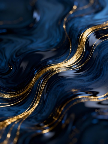 鎏金液态流光,3D柔波律动,光影交织,奢华优雅中透出梦幻体积感。
