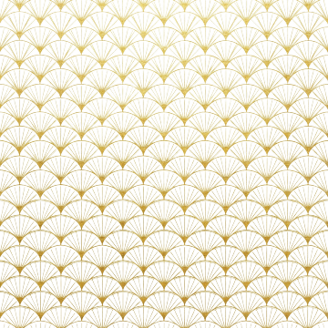 白色背景上,由细密金色虚线勾勒出的连续波浪形叶片图案,叶片呈对称排列,边缘柔和,内部有多条平行纹理线,整体形成无缝循环的暗纹装饰效果,线条细腻流畅,纹理精致典雅,视觉上呈现出简约而富有层次感的几何美学,线条具有立体质感,金色虚线在白色背景上形成鲜明而和谐的对比,叶片图案排列整齐有序,展现出优雅的韵律感和节奏感,整体设计简洁大方且不失精致细节。