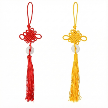 中式古典风,鎏金中国结配玉坠,水墨山水背景,国潮重拟物设计,尽显奢华与优雅,寓意财源滚滚。