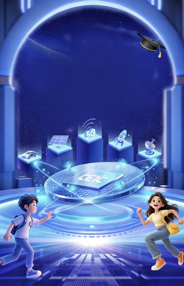 现代风,背景浅色渐变蓝白,自动化产线场景:弧形传送带、机械臂、发光舱门,搭配实验室玻璃烧杯/试管架