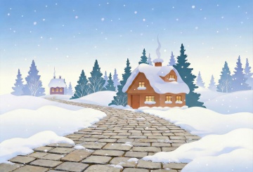 深蓝色渐变背景,边缘被精致的白色雪花图案环绕,雪花形态各异且大小不一,背景中点缀着细密的白色小点模拟飘落的雪花,整体营造出冬日雪景的宁静氛围,画面简洁干净,具有节日装饰感。