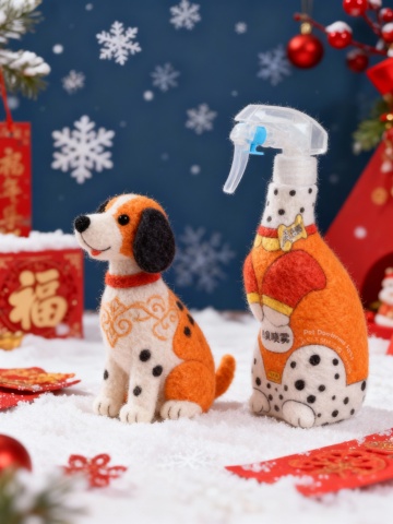 将图示商品变成毛毡质感,瓶身有精致图案,还原商品颜色细节。冬日新年场景
