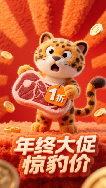 将图示商品变成毛绒绒质感,还原商品颜色细节。将商品放在暖色温馨的厨房操作台上,画面上方棕色毛绒艺术字牌“12·12 年终好价节”“限定商品 低至五折”装饰。
