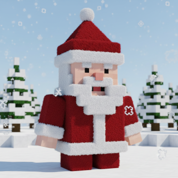 插画风圣诞场景,扁平化设计融合毛发生长质感,拟人化圣诞老人与笑脸星星树顶,搭配礼物与雪景,传递喜庆卡通氛围。