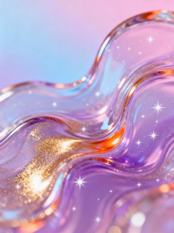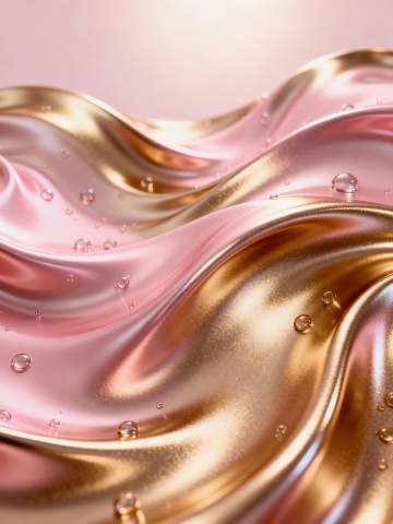 金色渐变背景,呈现出流动的液态金属质感,表面有细腻的波纹和漩涡状纹理,闪耀着明亮的高光和闪烁的金色微粒,光线从上方照射,形成自然的明暗过渡和光影层次,整体氛围奢华、璀璨且富有动感,色调从浅香槟金逐渐过渡到深古铜金,质感光滑且带有湿润的光泽感。