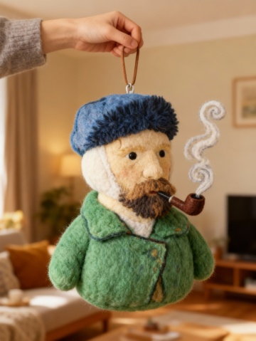 可爱感与复古感交融的软3D毛绒挂件,以动漫风演绎经典油画人物,毛发生长风细节增添文艺气息,适合艺术节主题文创。