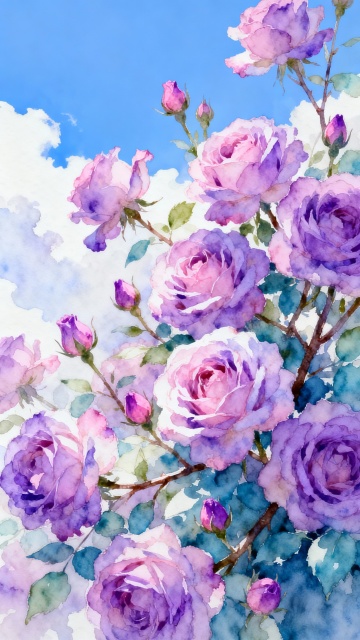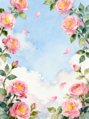 以粉紫色为主色调,柔和渐变的背景,点缀着粉色的花朵和绿色的叶子等自然植物元素,整体画面呈现出朦胧、梦幻的氛围,采用水彩晕染的纹理材质,色彩过渡自然柔和,营造出清新浪漫的感觉。