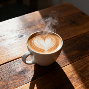 拟人风毛线杯套包裹热咖啡杯,雪花纹针织面料营造温馨可爱氛围,暖阳洒落木质桌面,传递冬日趣味与节日温情。