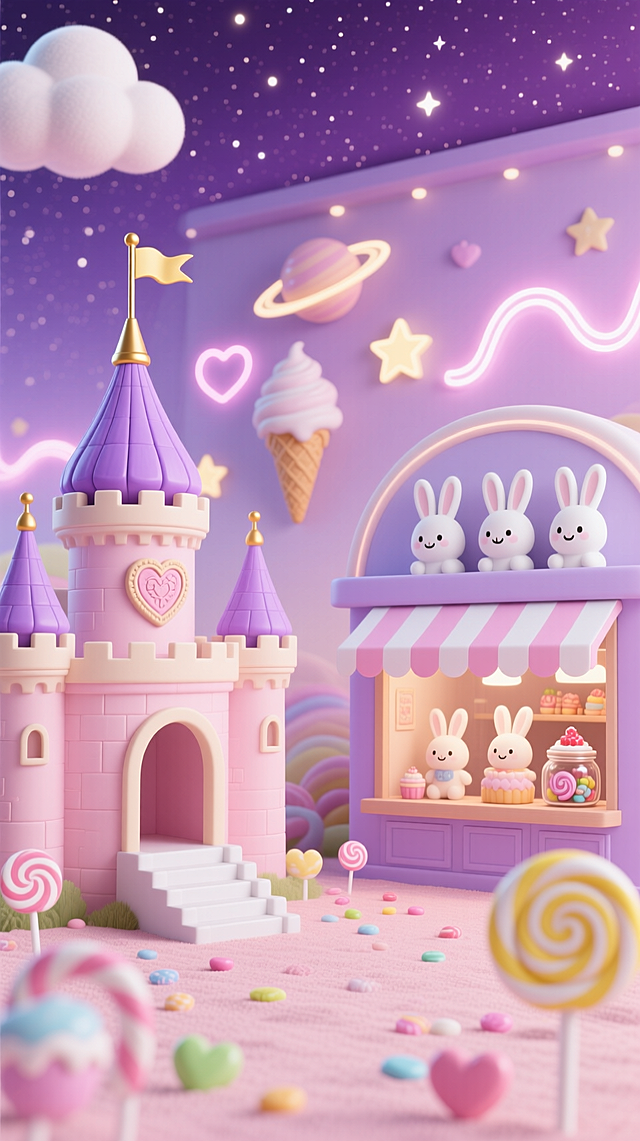 软3D风童话城堡,糖果色系搭配冰淇淋与球池,萌趣小熊坐彩虹秋千,梦幻可爱感十足,适合儿童节主题。详情