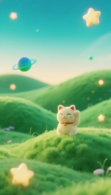 梦幻夜景中的毛绒小动物在软3D风格的童话乐园中欢快奔跑,融合粘土质感与卡通元素,营造出温馨可爱的节日氛围。