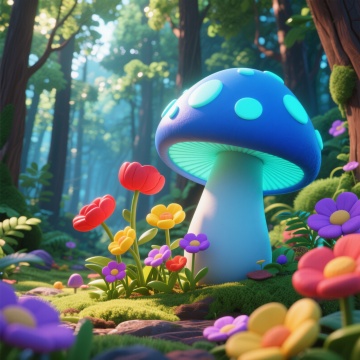 梦幻夜景中的毛绒小动物在软3D风格的童话乐园中欢快奔跑,融合粘土质感与卡通元素,营造出温馨可爱的节日氛围。