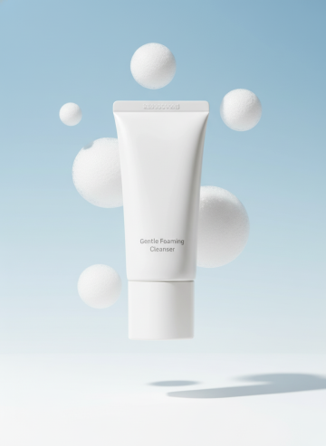 清新淡雅的性冷淡风设计,柔和光线下泡沫轻盈环绕,简约瓶身搭配轻拟物质感,营造出清透舒适的视觉体验。