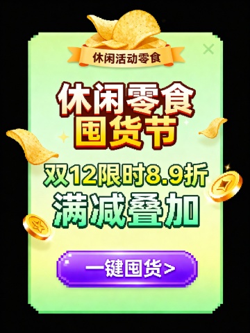 一个嫩粉色渐变的竖的长方形,粉白色调,无黑边像素风格,顶部有婴儿奶瓶图标,醒目提示横幅 “母婴好物 狂欢节”,超大字体 “双 12 限时 7.5 折 满赠好礼”。下方亮黄色按钮 “前往囤货 >”;融合了母婴元素(如卡通奶瓶、云朵特效)