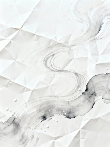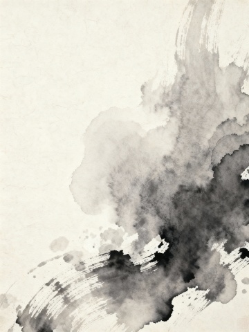 一幅抽象水墨风格的装饰画,以黑白灰为基调,点缀着大量金色的流线、泼溅和斑点。画面中,黑色与深灰色的墨色如同流动的云气和卷曲的波浪,相互交织、渗透,形成富有动感和韵律的有机形态。金色的线条流畅飘逸,如同金色的溪流在墨色间穿梭,时而汇聚成粗壮的主线,时而散开为细小的光点和飞溅的墨滴,增添了画面的奢华感和灵动性。整体构图呈现出一种向上延伸、螺旋上升的视觉趋势,留白充足,使得墨色和金色的层次更加分明。光影处理上,墨色部分带有微妙的明暗渐变,金色则散发着柔和而璀璨的光泽,营造出神秘、高雅而又充满生命力的艺术氛围,具有强烈的现代简约美感和东方水墨韵味。