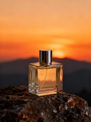 鎏金风与玻璃风交融,金属瓶盖折射柔和光影,干花飘浮于琥珀色背景,营造奢华优雅的唯美感,重拟物手法强化质感与实景感。