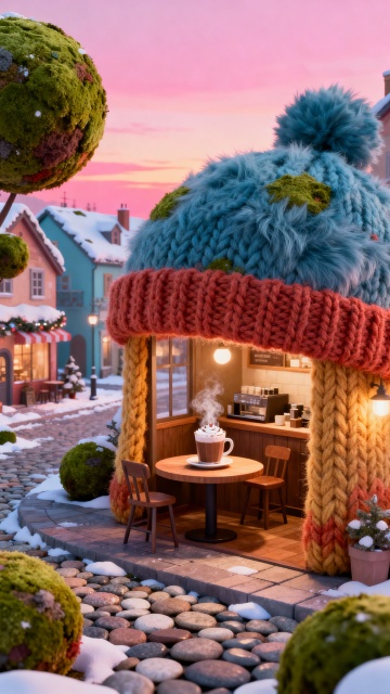 毛绒雪镇咖啡馆,毛线编织的咖啡馆