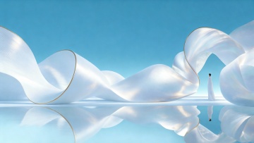 简约现代风格的3D抽象背景,以柔和的珊瑚粉色与淡奶油色为主色调,呈现出流畅弯曲的带状结构,这些带状物表面带有细密平行的纹理线条,整体呈现出轻盈通透的半透明质感。画面中央有一个明亮的圆形光晕区域,光线从中心向外柔和扩散,营造出宁静、空灵且温暖的氛围。构图采用曲线动态平衡布局,背景简洁干净,无任何文字或logo元素,光线过渡自然,阴影细腻柔和,整体设计具有高度的视觉统一性和简约高级的质感。