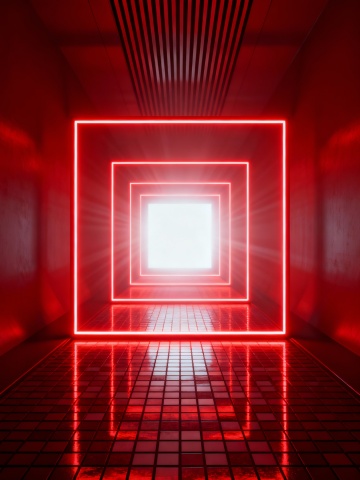 极简几何空间,混凝土肌理与光影交错,3D渲染呈现未来感工业美学,静谧中透出现代设计力量。
