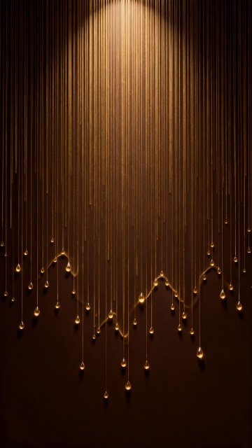 3D渲染风格直播间背景,整体呈现温暖的金色系色调,画面中央为明亮柔和的浅色背景,营造出开阔通透的空间感。两侧矗立着多根玻璃立柱,玻璃材质通透且带有金色边框,立柱大小不一、错落有致地排列,形成明显的空间纵深感。地面光滑如镜,清晰倒映出玻璃立柱的轮廓和金色光影,水面反射效果细腻,带有轻微的波纹质感,光线从背景中央柔和洒下,照亮立柱并在地面形成温暖的光斑,整体氛围奢华而不失简洁,视觉层次分明,能有效突出直播主体。