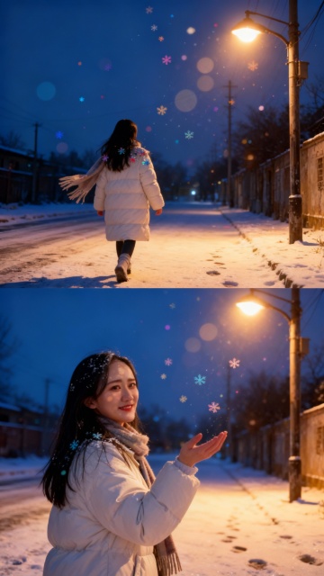 雪中撑伞,光影交织,胶片风质感与毛发生长风柔焦相融,唯美感与浪漫感并存,冬日清新氛围尽显文艺与温柔。