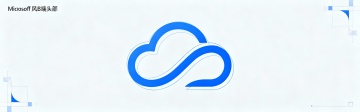 微软风B端头部背景,居中偏右放置蓝色透明锥体与几何方块组合,白色渐变底色,无文字纯背景
