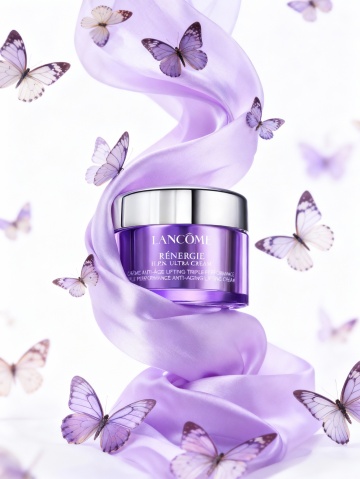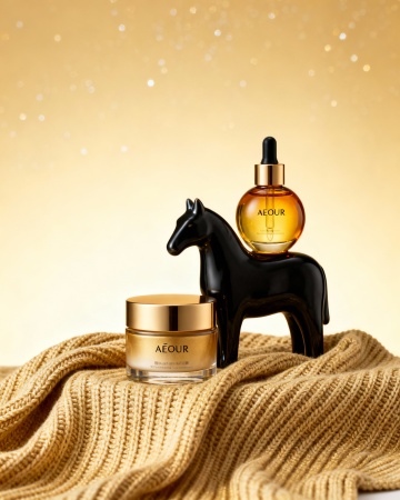 鎏金质感瓶身搭配3D立体光影,重拟物风呈现奢华优雅,红果点缀映衬节日氛围,金属光泽与柔润乳霜交织,尽显时尚高级感。