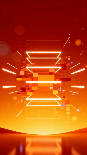 橘色渐变背景,科技故障风格,充满动感的线条与几何图形交织,光线在扭曲的空间中流动,形成明暗交错的光影效果,带有数字失真的条纹和噪点,整体呈现出未来感与故障美学的视觉冲击,画面层次丰富,色彩从深橘到亮橙自然过渡,营造出神秘而富有张力的科技氛围。