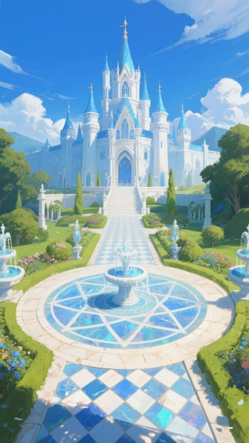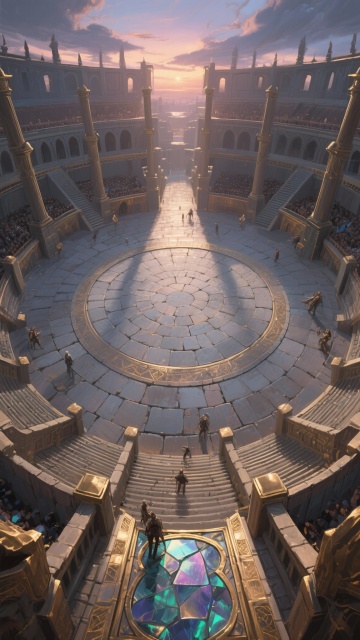 梦幻星空下,哥特式拱门环绕破碎玻璃地砖,几何纹路交织粒子光流,插画风呈现神圣神秘的虚拟现实之境。
