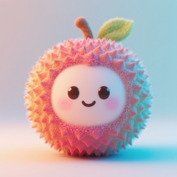 一个毛茸茸的香蕉和西瓜,两个相互互动,有眼睛、嘴巴,jellycat风格,马卡龙配色,可爱,使用精细蓬松的毛绒纹理,柔和的色调,眼睛水平角度,自然光,8k,出色,超高细节,C4D模型渲染,3D渲染
