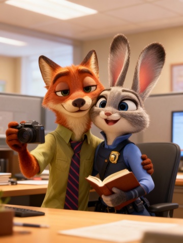 卡通感与3D风融合,拟人化动物角色展现温馨趣味,软3D质感增强体积感,动漫风格画面充满可爱气息,办公场景增添生活情调。