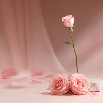 粉色拱门与玫瑰,云端背景,梦幻浪漫,软3D风简约设计。