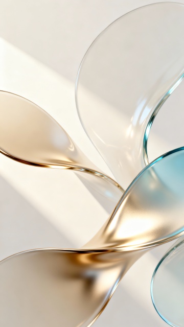 极简主义风格的抽象几何背景,以纯净的白色和浅灰色为主色调,具有强烈的光影对比效果,明亮的高光与柔和的阴影交织,形成丰富的层次感。画面中充满了不规则的透明褶皱形态,这些褶皱呈现出轻盈飘逸的质感,边缘锐利而清晰。线条流畅且富有动感,呈现出放射状和曲线状的交错排列,营造出一种动态的视觉张力。整体构图具有现代设计感,留白恰到好处,信息传达简洁高效,符合极简抽象艺术的审美特点。在保持原有透明褶皱质感和光影效果的基础上,变换造型,呈现出不同的曲线弧度和折叠方式,使整体画面既保留了原有的设计精髓,又展现出新的视觉形态。