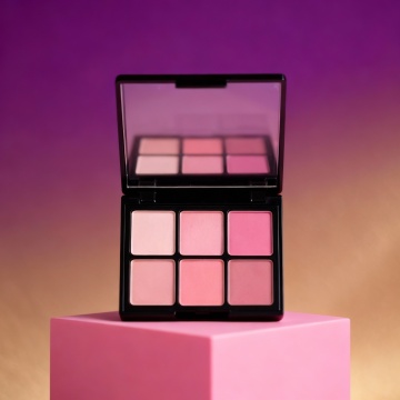 粉色系双色设计风眼影盘,融合鎏金文字与轻拟物造型,甜蜜可爱中透出时尚潮流感,印刷风包装呼应节日氛围。