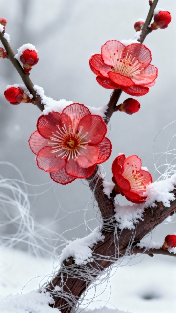 光影交错间,红梅剪影映于素墙,水墨风韵与简约主义交织,静谧中透出清透文艺感,尽显中式美学意境。