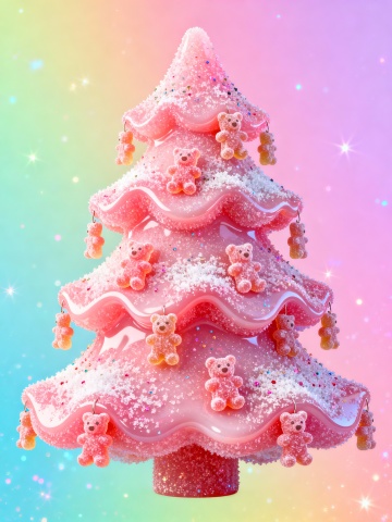 3D液态风圣诞树,融汇重拟物与粘土质感,鎏金线条勾勒梦幻轮廓,点缀棉花糖与彩糖粒,营造喜庆甜蜜的节日氛围。