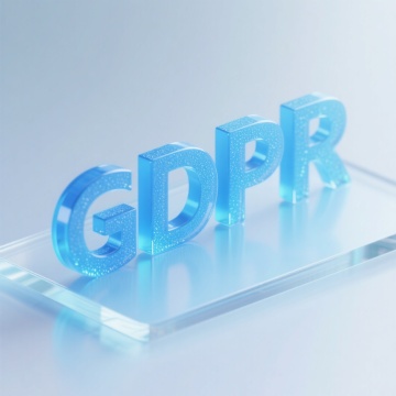 白色背景上半透明渐变的蓝色文字“GDPR”,呈现出柔和的光晕效果,线条流畅圆润,具有现代科技感和简约美感,整体画面干净整洁,视觉层次分明,信息传达清晰。