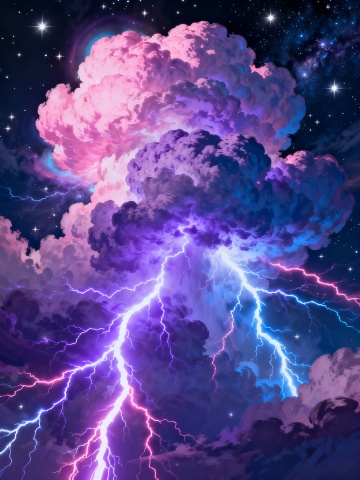 一片深邃神秘的夜空,无数闪烁的星光点缀其间,呈现出梦幻般的水彩画风格。星星的光芒带着柔和的光晕,色彩以温暖的粉紫色调为主,穿插着淡淡的蓝色和金色,营造出浪漫而宁静的氛围。夜空中漂浮着几缕轻盈的云彩,被星光映照出柔和的轮廓,整体画面充满了诗意的梦幻感,给人一种置身于童话般星空下的奇妙体验。