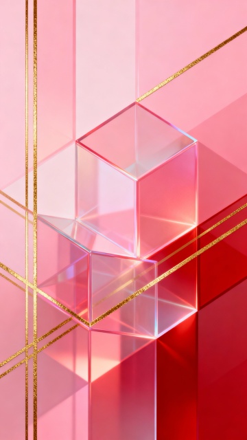 现代感与未来感交织,3D几何造型搭配玻璃风透明质感,金属色光影流动,简约主义中透出科技感与体积感,营造极简而高级的视觉空间。