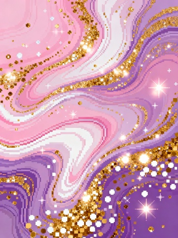 由像素格子材质构成的柔和粉紫色背景,呈现出类似大理石纹理的流畅波浪状图案,线条以浅粉色和深玫瑰金为主,以像素化的块面感表现出平滑的曲线过渡和层次感,整体色调统一和谐,光影柔和,营造出细腻而富有几何美感的抽象背景。