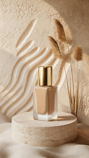 杂志风封面撕裂,露出粉底液瓶身,时尚感与拼贴艺术结合,现代简约美学,传递轻盈滋润的护肤体验。
